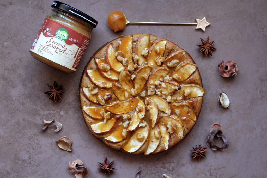 Working in collaboration with these guys, they kindly gifted me some Nature’s Charm products – including the star of the show in this recipe, their incredibly rich and delicious coconut caramel sauce which is ridiculously addictive. A spiced apple cake is the perfect partner, especially at this time of year – and vegans, this one is a good shout for you too!