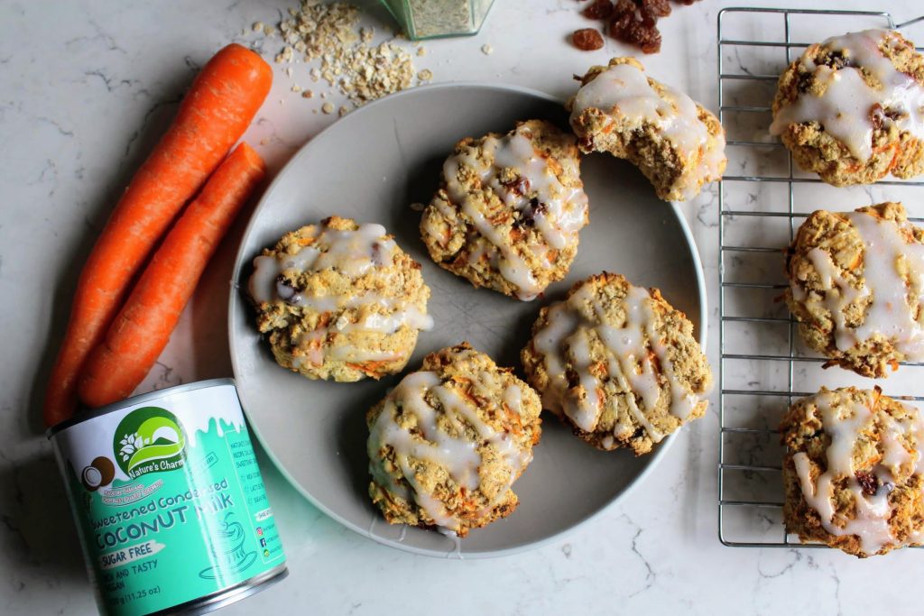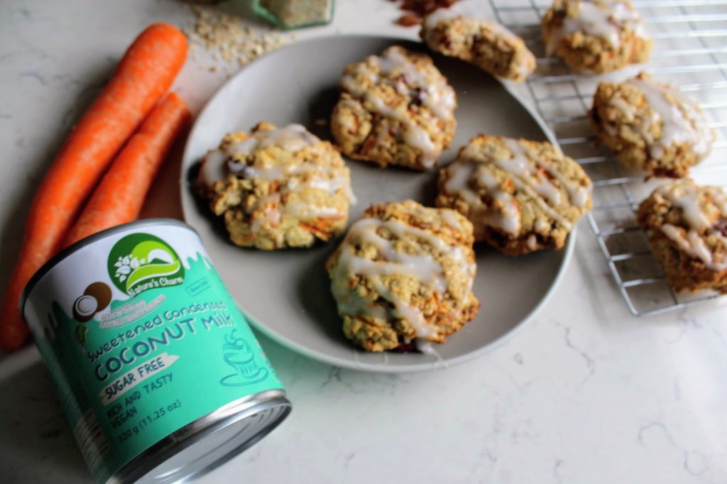 When you cross the tasty flavours of carrot cake – carrots, cinnamon, ginger, raisins and walnuts – with a simple oaty cookie mixture, you get these wonderful cookies! Healthy, full of taste and texture, and packed with the good stuff, using Nature’s Charm [paid recipe – ad] coconut sugar-free condensed milk also adds a delicious hint of coconut to give these treats even more of a boost!