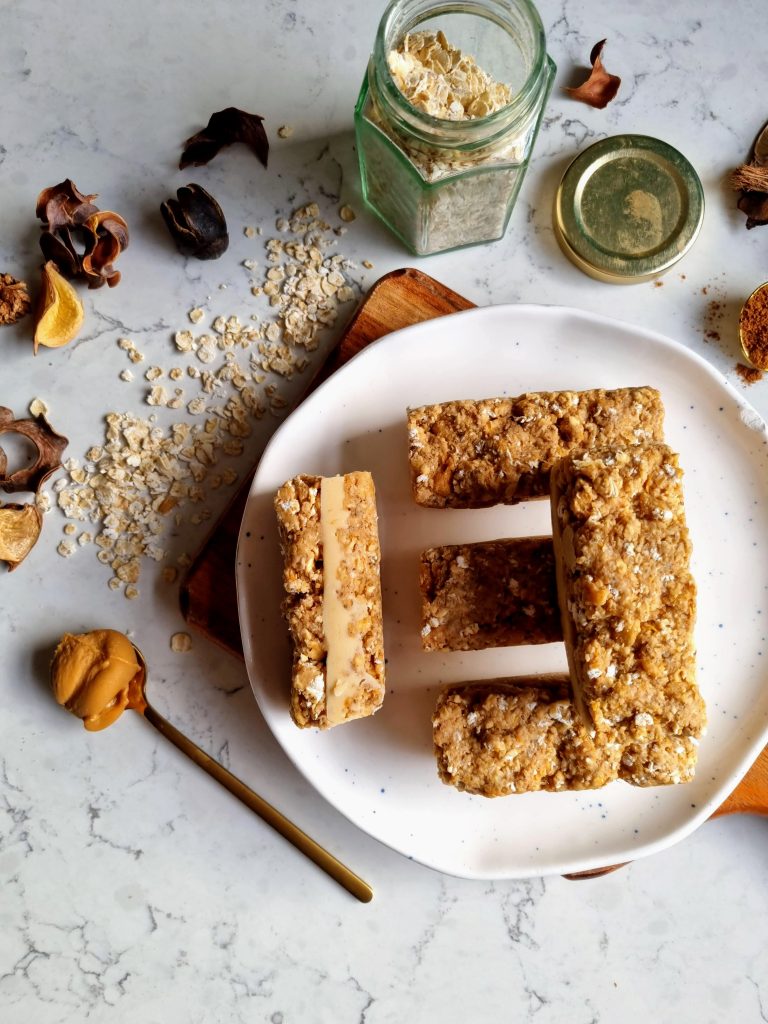 This might sound like an interesting mixture when you see pumpkin and chickpeas appear in the ingredients but trust me, it works so well when combined with white chocolate and pumpkin spices. I’ve created a layered cookie dough-like flapjack mixture filled with a white chocolate and peanut butter layer, making an insane no-bake, high protein and seasonal snack. Deeeeeelicious!