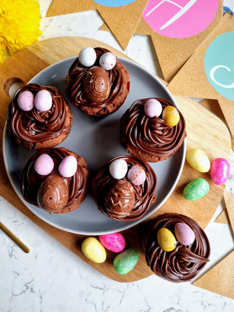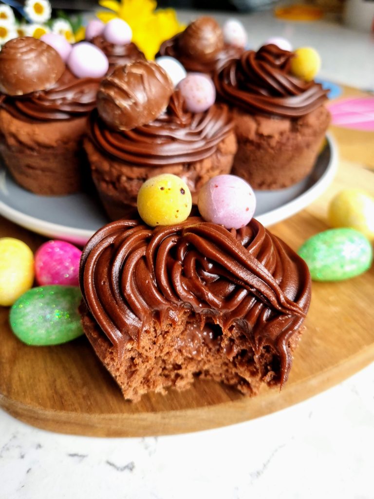 - Once cooled, pipe the icing on top of each cupcake. Add a couple of Mini eggs on top of each plus a salted caramel Easter egg. Enjoy!