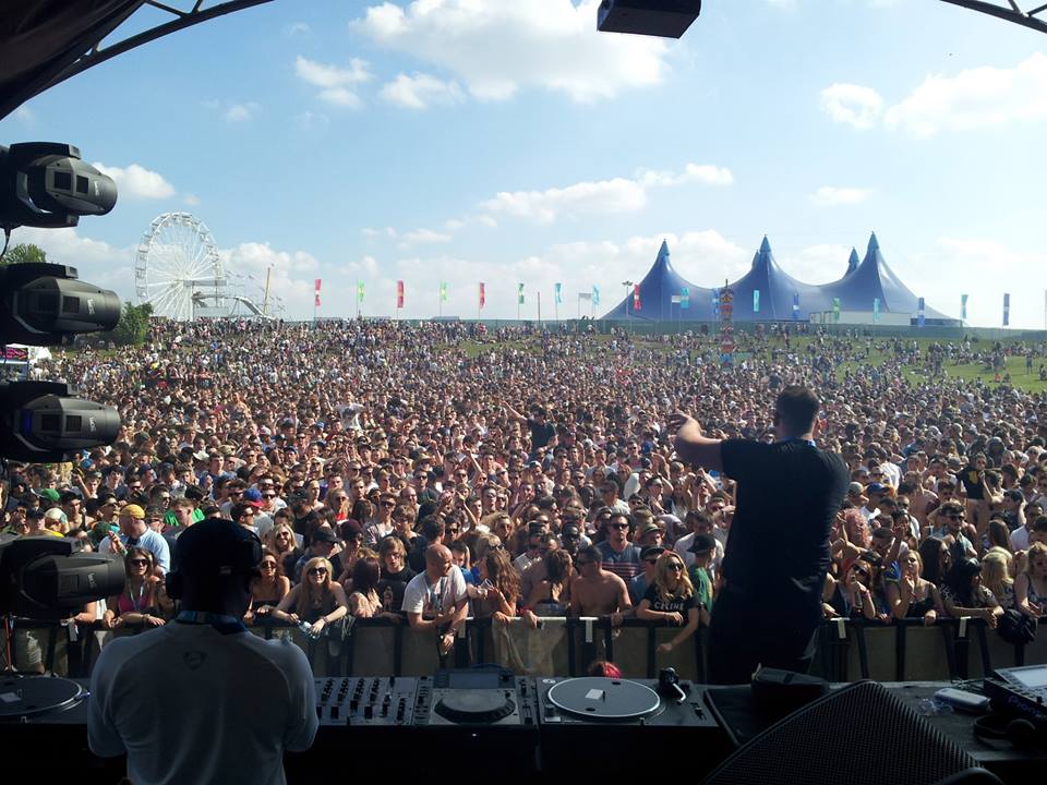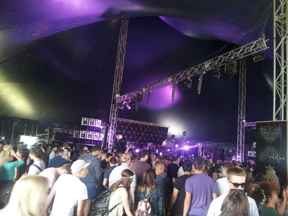 As members of the Social Media Team, we had access all areas passes so we sneaked backstage and checked out the view from the the other side. Wow… The actual tent was only 2/3 full but seeing hundreds (if not thousands) of faces, all looking in your direction (ish) and bouncing away made us quite humbled, being lucky enough to experience the duo’s awesome, bassy house music from the stage itself, especially when they dropped their own track, “Real” featuring the gorgeous vocals of Yasmin, much to the crowd’s delight.