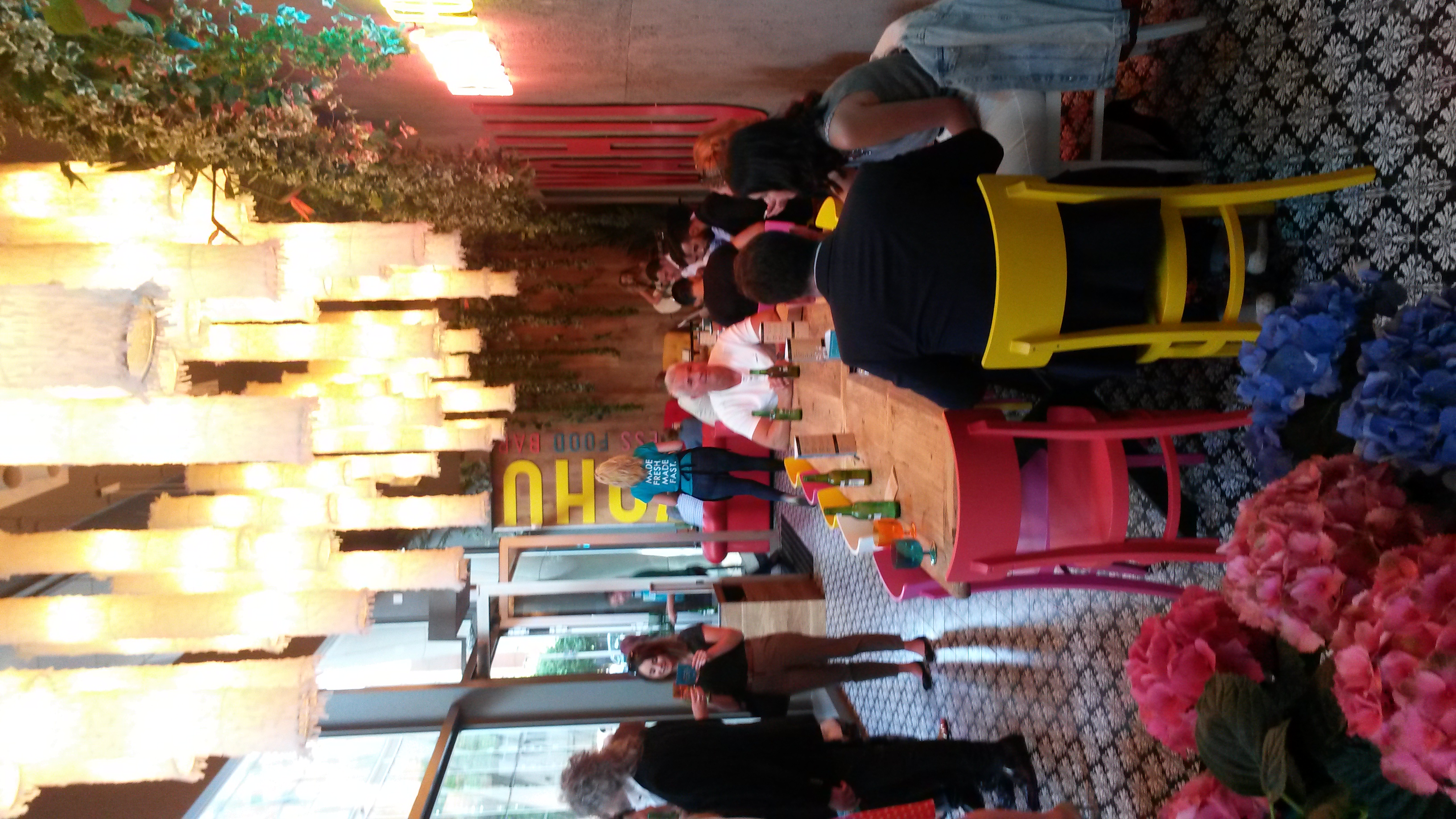 I’d walked past this a few times and was intrigued by the vibrant colours and branding from the outside, so I was delighted to be invited to the VIP Launch Party this evening. My fellow colleague at The Media Octopus and blogging girly Katie and I arrived at the buzzing venue, welcomed by a complimentary glass of Prosecco to enjoy in the late sunshine. With plenty of tables and chairs outside, Wahu was packed and had a really friendly, communal vibe about it.