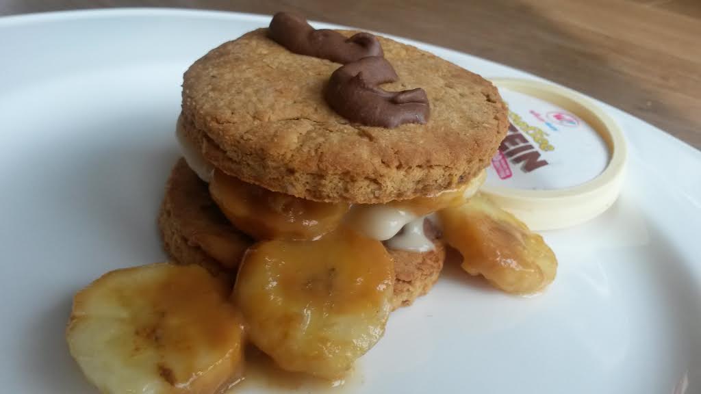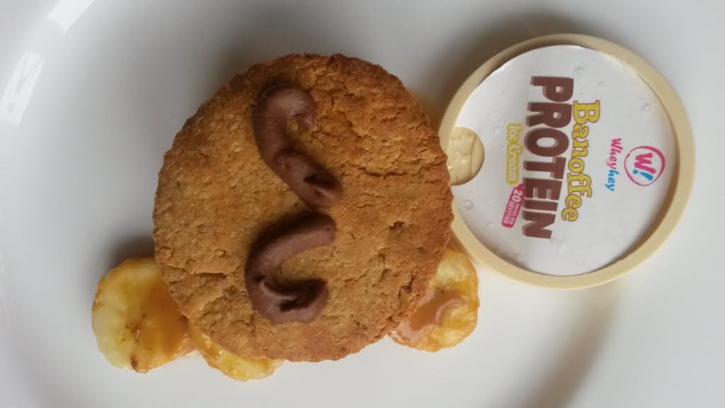 My first challenge was special one as it had to incorporate the new Wheyhey flavour, Banoffee, in celebration of Movember. A banana-caramel version of my favourite ice cream? HELLO! I couldn’t wheyt (sorry) to try it! When it arrived, I certainly wasn’t disappointed and got cracking with my creation: Banana, Peanut & Banoffee Protein Stack, made using some of my favourite products including Hognuts nut butter, Walden Farms Caramel syrup and PhD Nutrition Vanilla diet whey protein.