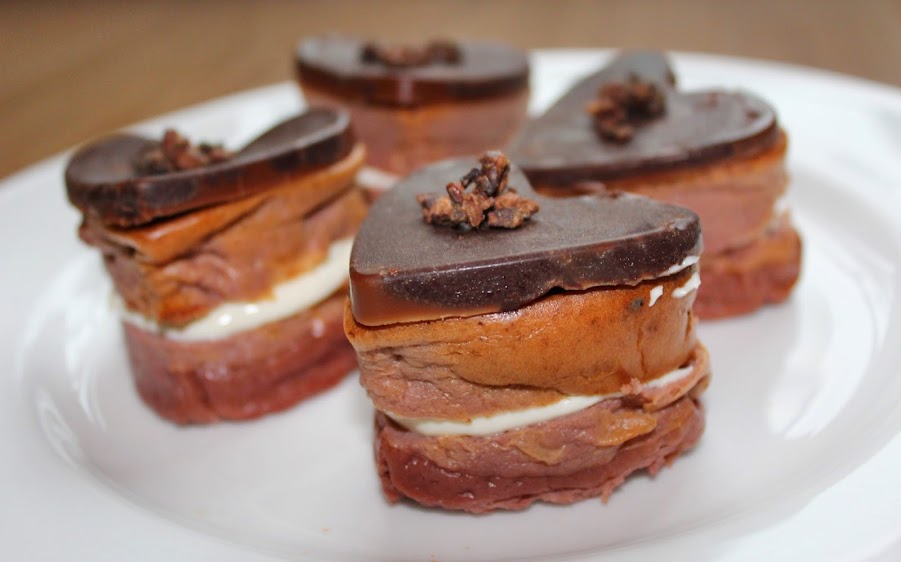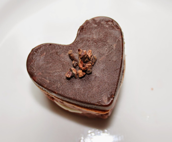 - When you’re ready to serve, cut your strawberry hearts in half horizontally. Spread a little of the vanilla cream in the middle, top with the other half and pop your chocolates out. Lay one heart on top of a strawberry heart, sprinkle with a few cacao nibs and enjoy, guilt-free!