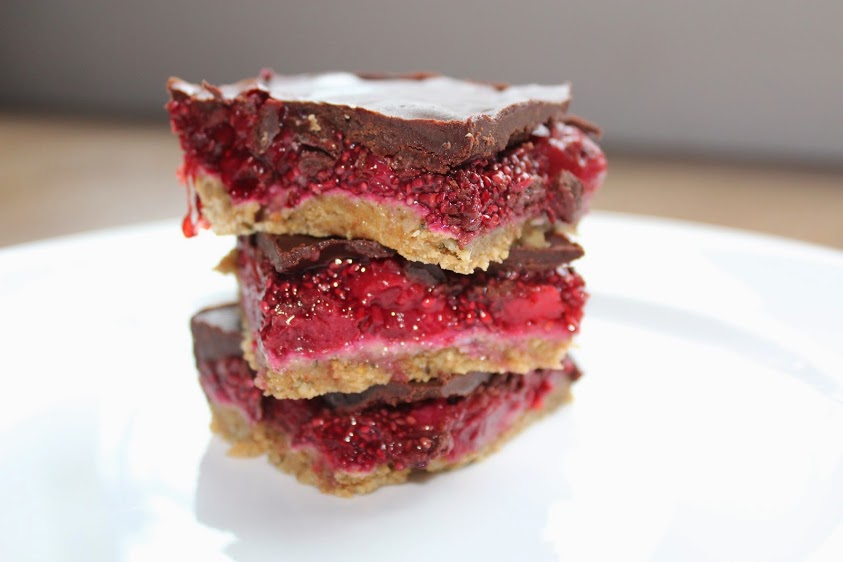 I love the combination of fruity raspberries with the richness of chocolate and creamy nuttiness of almonds, so this slice is just heavenly. With an oaty base, chia seed ‘jam’ and a coating of chocolate on top, what’s even better is that this is made from relatively healthy ingredients without containing too much sugar, while still satisfying a sweet tooth. An ideal snack to take to work or breakfast on the go option!