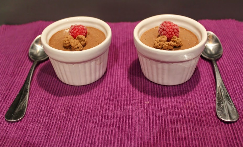 - Now for the easy part – put the tofu, frozen banana chunks and cooled melted chocolate in a blender and whizz up until smooth. Pour into 4 ramekin dishes and leave to chill for a few hours or overnight.