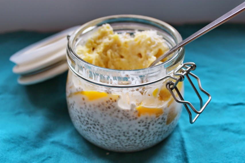 - If you want this delicious delight for breakfast, soak your chia seeds the night before. Place in a kilner jar and stir in the coconut water, coconut milk (save 2 tbsp of this!), lime zest and juice plus stevia. Mix, leave for 5 minutes, then mix again. Seal the pot and chill overnight.