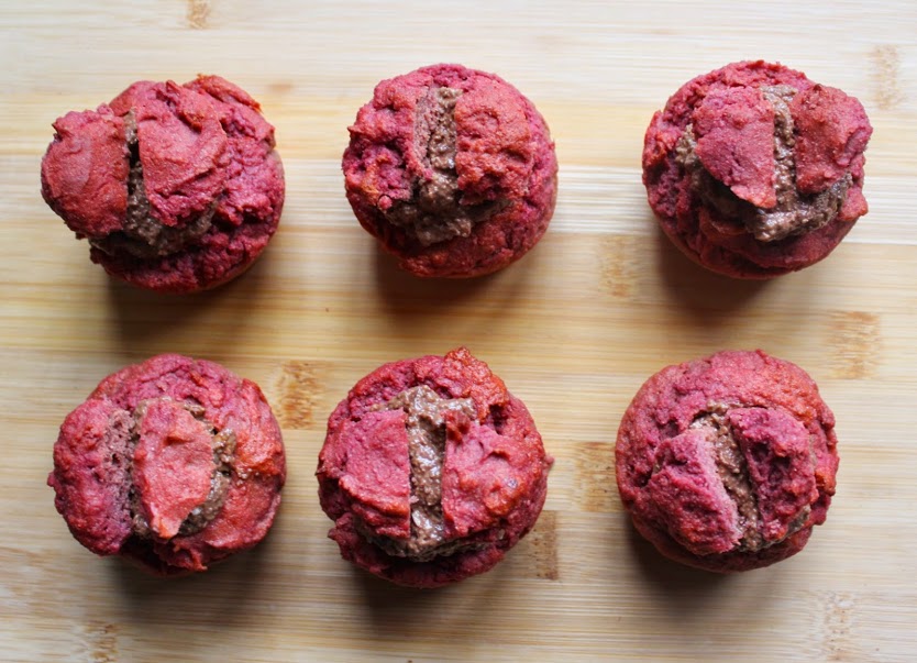 With these cute, vibrant muffins, I wanted to go a bit retro and make them into butterfly buns – remember, like you made at school? Why not! Made from the super ingredient that is beetroot to add a wonderful pink element, with a tasty protein boost plus a no added sugar, healthy fat packed chocolate filling, what’s not to love about these colourful clean treats?