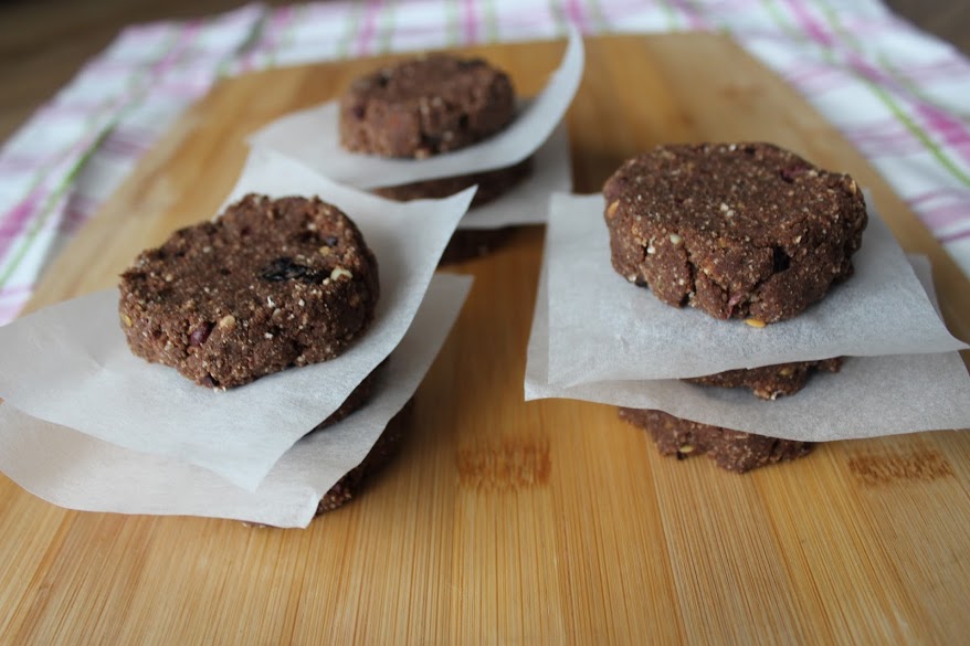 I was craving something dough-like, indulgent and chocolatey but didn’t have time to bake. A play around in the kitchen with ingredients I had in my cupboard resulted in these delicious, protein packed goodies – a combination of cacao, chocolate PhD Nutrition diet whey protein, dried cherries and cacao nibs. YUM. The best part? They were ready in less than 10 minutes!