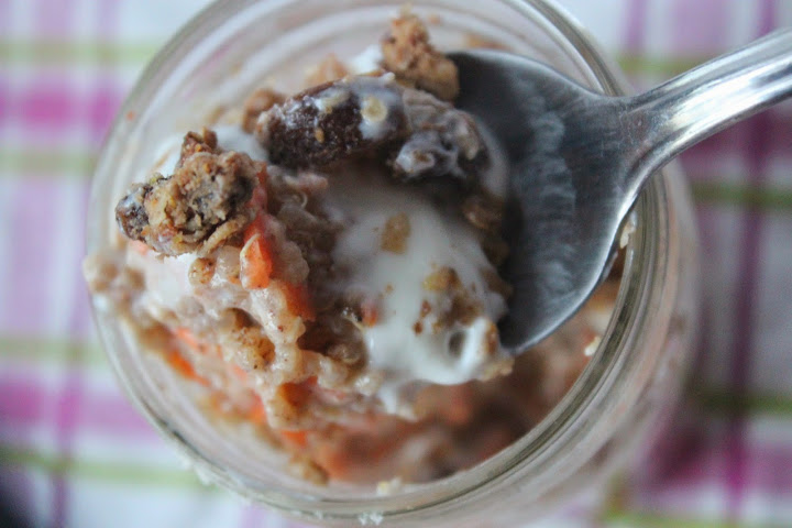 Now sprinkle a generous portion of this on top to finish off your carrot cake breakfast or dessert perfectly!
