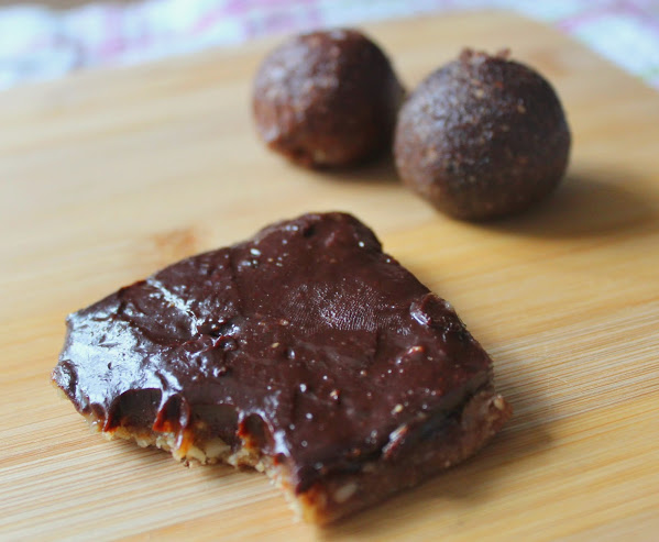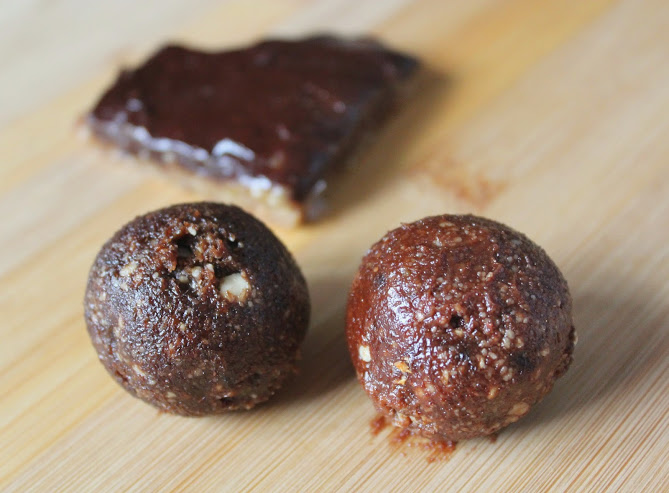 I couldn’t resist taking away the Raw Taco Salad (walnuts, quinoa, sun-dried tomatoes, cumin, garlic, chilli, rocket, avocado, Pico de Gallo and spring onions), plus a few sweet treats – the Yin & Yang Balls, as recommended by My Big Fat Diary (cacao, carob, dates, almonds, cashews, agave nectar and Himalayan salt), and the Raw Caramel Slice (dates, almonds, coconut oil, tahini, rice bran syrup, cashews and cocoa powder). And yes I you will see that I took a bite out of this before I took the photo – it was too irresistible!