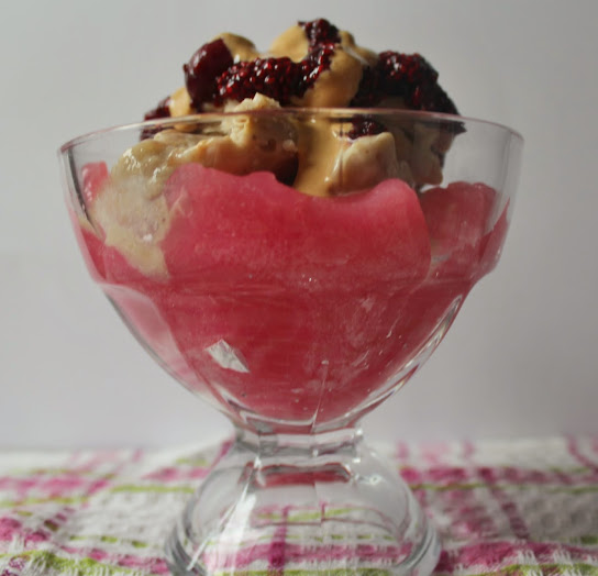 Right, now for the fun part. Get your sundae dishes ready (the whole mixture will divide into 4 servings), remove the ice cream from the freezer and chia jam and jelly from the fridge.