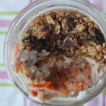 Simply place all of the ingredients in a high power blender and whizz up until smooth and slightly thick. Pour this into a bowl and clean your blender as you’ll need it again!