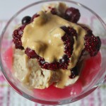 Mix the cornflour with a little cold water to make a paste. Heat the coffee liquid in a small pan until almost boiling, then turn the heat down and add the cornflour mixture, whisking constantly until the sauce thickens. Remove from heat and stir in the sweetener and a dash of almond extract. Now you’re ready to drizzle this over!