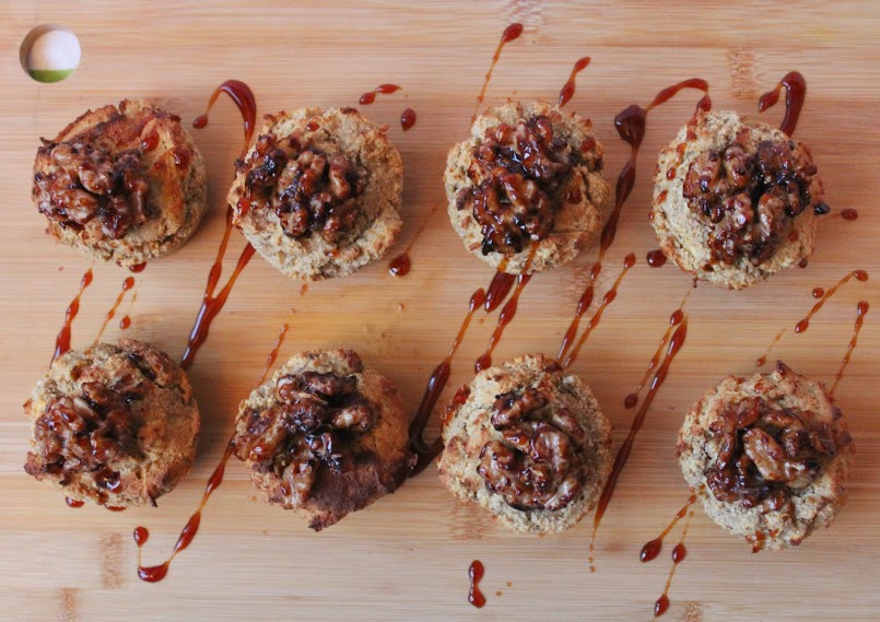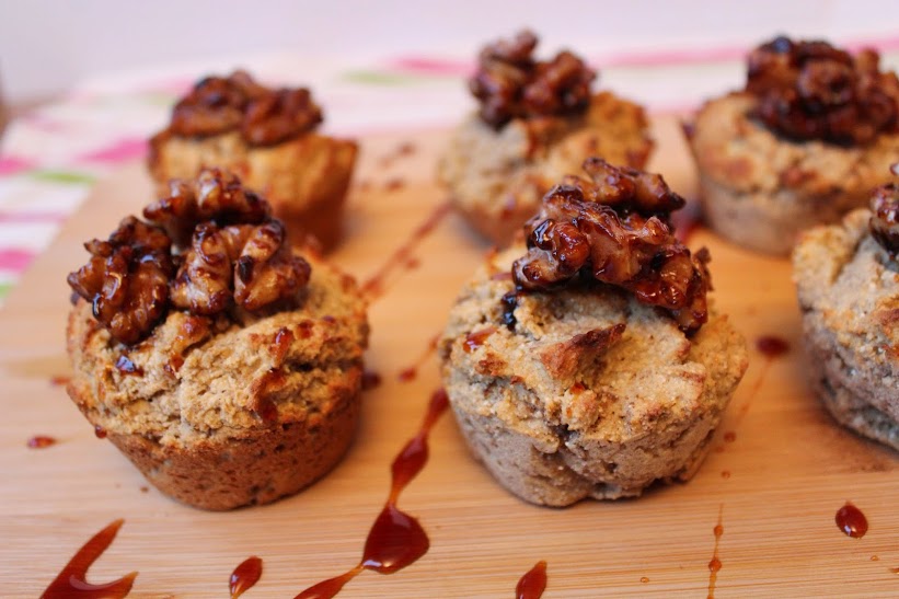 - Now spoon a couple of walnut pieces on your muffins and leave for a little longer to allow them to ‘stick’ on top. Now you’re ready to enjoy!
