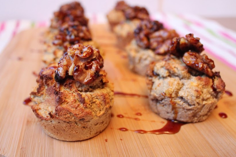 Apples, walnuts and mixed spices – ahhh, hello autumn! Just one of the many reasons I love this time of year, anything that combines these flavours is an ultimate winner. These delicious high protein muffins are topped with homemade caramelised, crunchy walnuts which believe me, really finishes these slightly more indulgent baked treats perfectly! Enjoy…