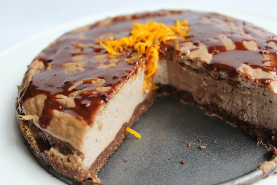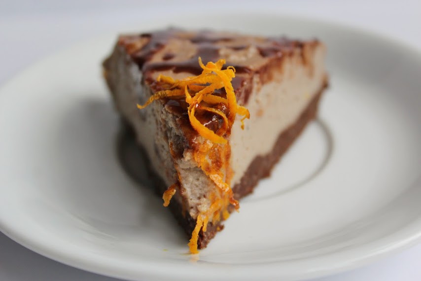 For a chocolate glaze drizzle: Simply mix together a little orange juice, 1 tbsp honey and 1 tbsp cacao powder and whisk until smooth. Open up another cardamom pod and crush the seeds, then add to the sauce. Pour over your cooled cheesecake and leave to set. Sprinkle with the remaining orange zest and you’re good to go!