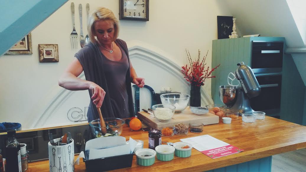 Cakes in the oven, Ugne gave us a demo of her signature Christmas free-from bake, an Apricot, Chestnut & Coffee Cake. Taking us through the recipe (gluten-free and , we all had a chance to ask her some questions. The Lithuanian bodybuilder shared some interesting insights with us, from what it was like being a contestant on the show to why she chooses to eat free-from and consuming 4,000 calories to support her gym workouts. What a woman.