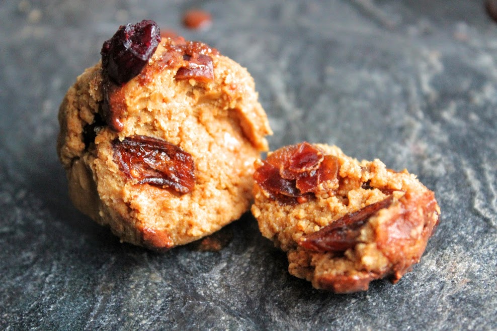 These little bites of deliciousness came about from a random experiment, when I had half a can of chickpeas leftover. Blending them up to form a cookie dough, mixed together with a few of my favourite products with the addition of festive flavours like ginger and cranberries – and there you go, super simple, no-bake protein bites! You could use chocolate protein powder if you wish, but I find vanilla, ginger and peanut work so well together in these bad boys. Enjoy!