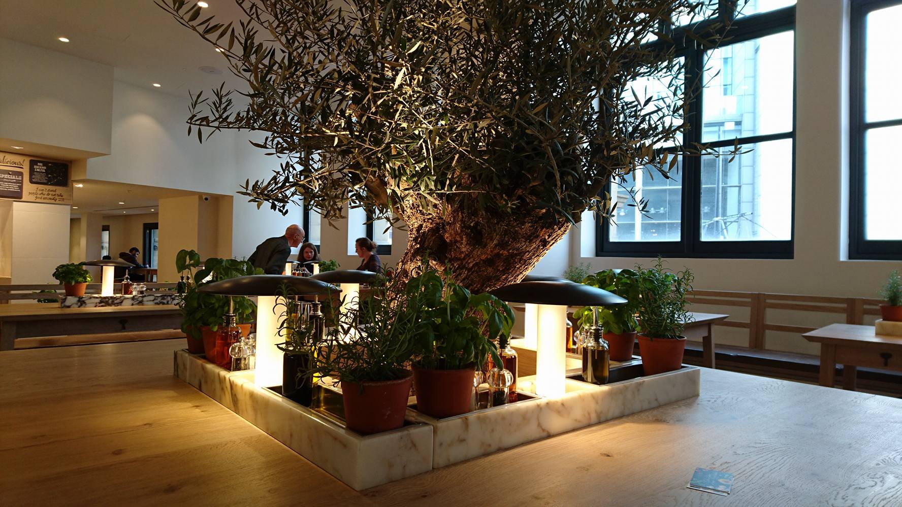 On a recent trip to Vapiano, the German casual restaurant chain offering Italian food in Manchester’s revived Corn Exchange, from the moment James and I stepped in it was clear that this kind of spot-on service is a given. A beautiful light, airy and spacious venue filled with all things green, we were surrounded by fresh pots of basil, thyme and even an olive tree growing from the table; we both like these quirky things with a nod to nature.
