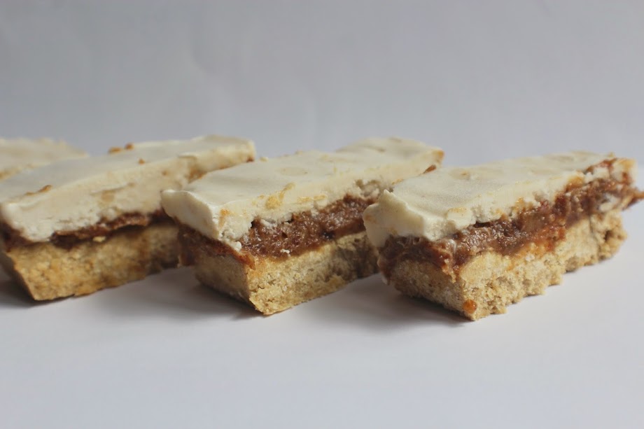 When you’re ready to serve, remove from the freezer about 5-10 minutes beforehand then slice up into bars or squares (your choice) – and enjoy! Keep any leftovers in the freezer for up to 1 month (if they last that long!!).