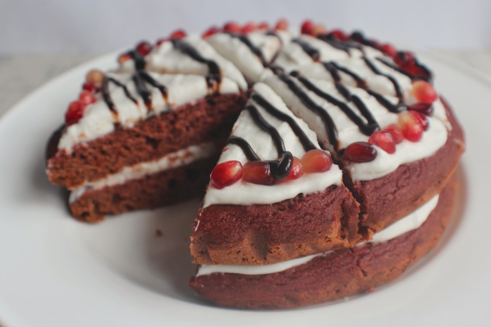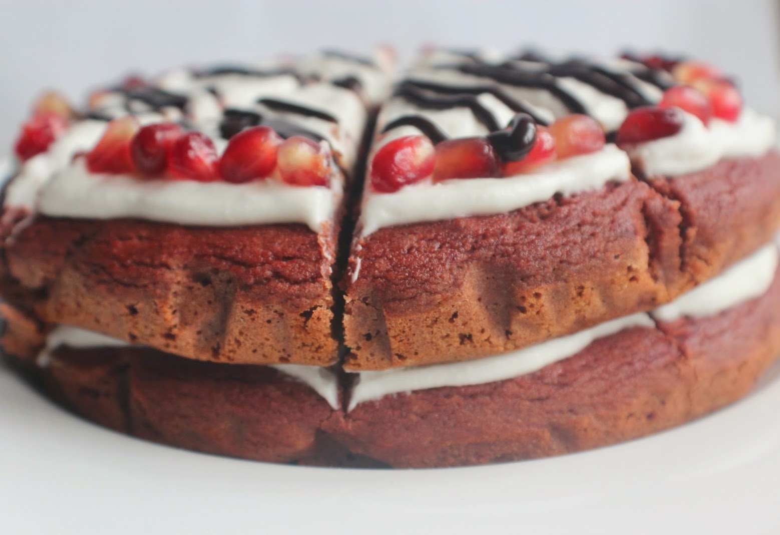 - Decorate how you want – I went for pomegranate seeds and a drizzle of Sweet Freedom Choc Shot. Now slice up and serve!