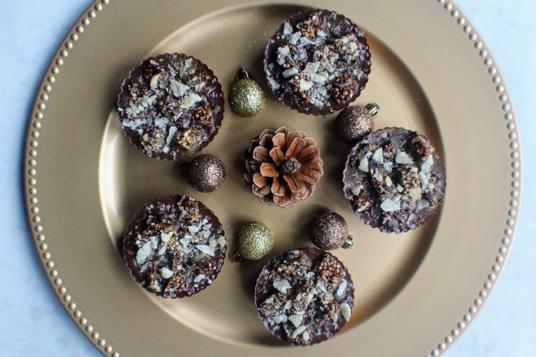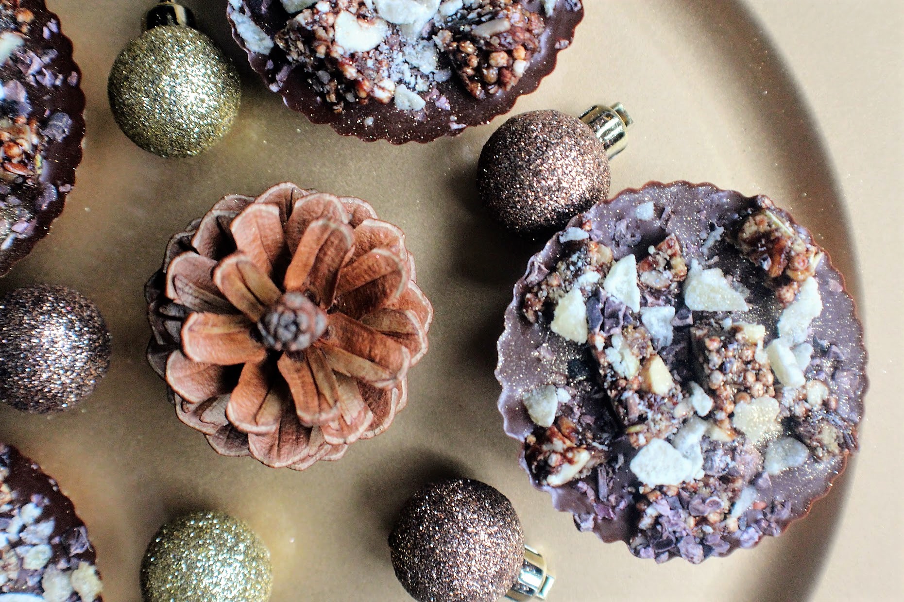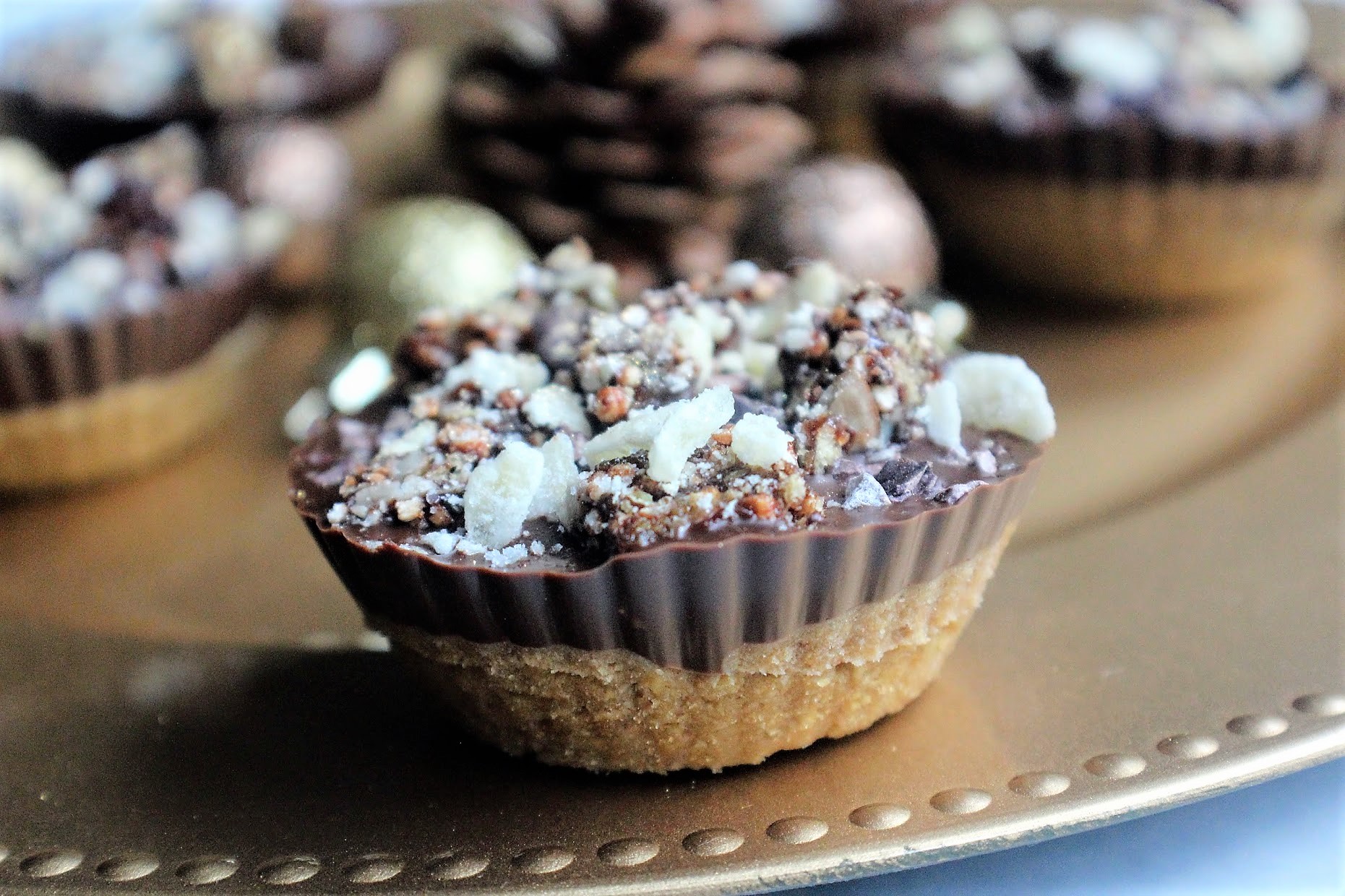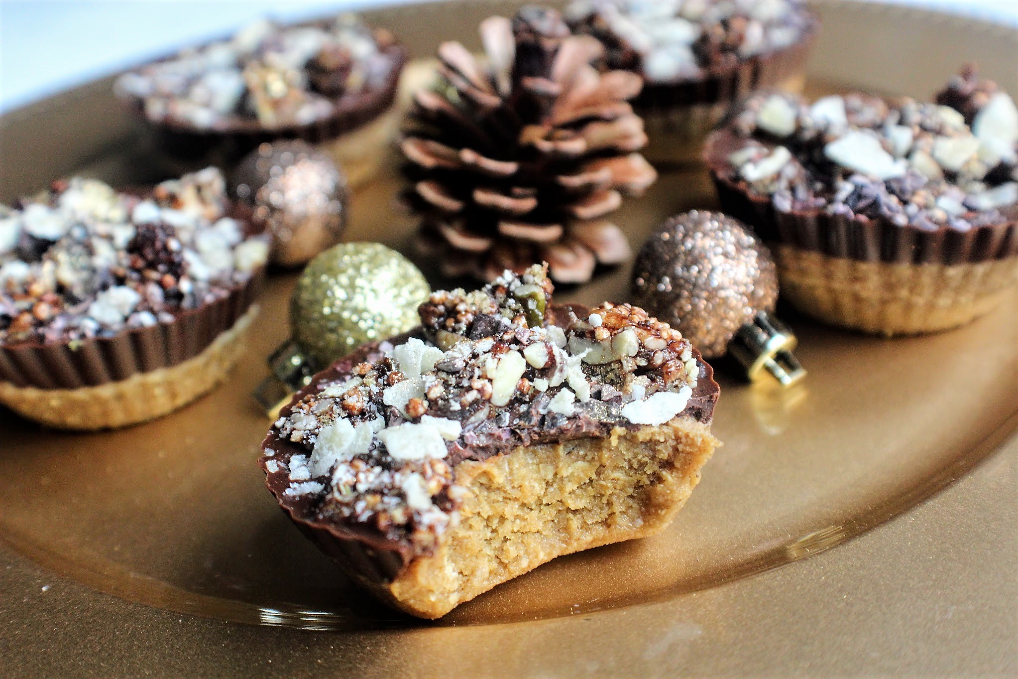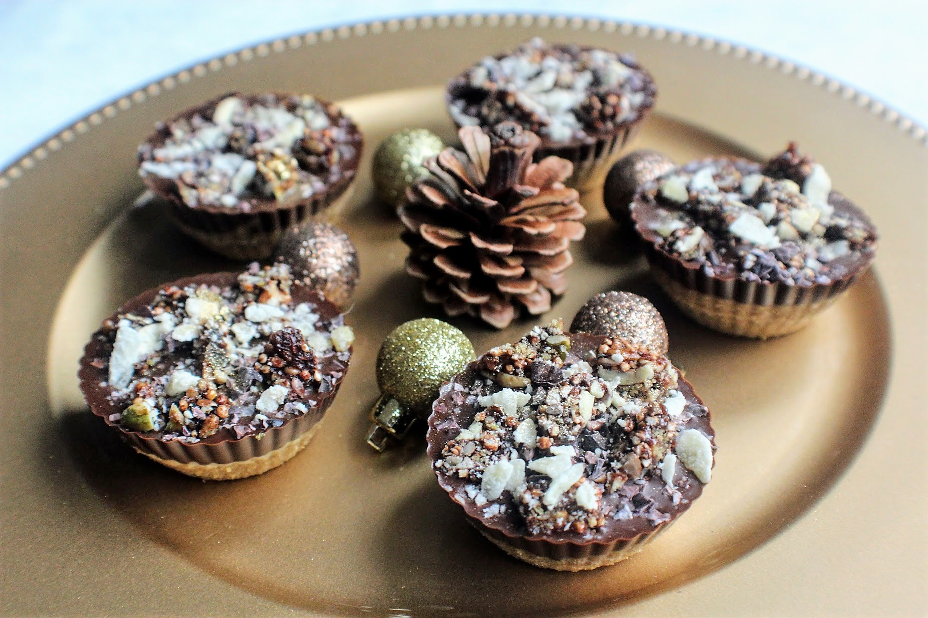 I’m once again working with Perkier to create a delicious Christmas recipe using their gluten-free, vegan-friendly, no refined sugar Cacao & Cashew Quinoa Bar… Let me introduce these incredibly delicious (if I do say so myself) raw desserts made up of a ginger oat base, a dreamy caramel middle covered with a delectable layer of chocolate, topped with the crunch of the broken-up bar, cacao nibs and ginger. HEAVENLY. Make these a week ahead if you’re hosting a party, they are sure to go down a treat!