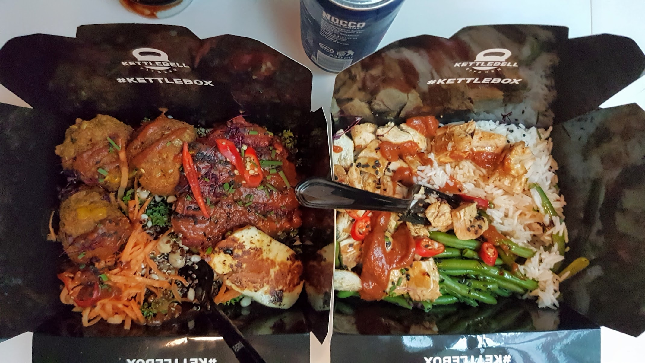 After a long gym session James was ready to fuel up and went for his firm favourite, the Firecracker Chicken Box [grilled chicken breast with tangy firecracker sauce, fluffy rice topped with sesame seeds, spring onions and chopped green beans]. Although he missed having the option of adding the other vegetables and sides (like at the Ancoats one), this Kettlebox was just as flavoursome, packed with juicy chunks of chicken and with plenty of rice to mop up the hot sauce on the side.