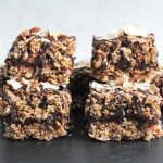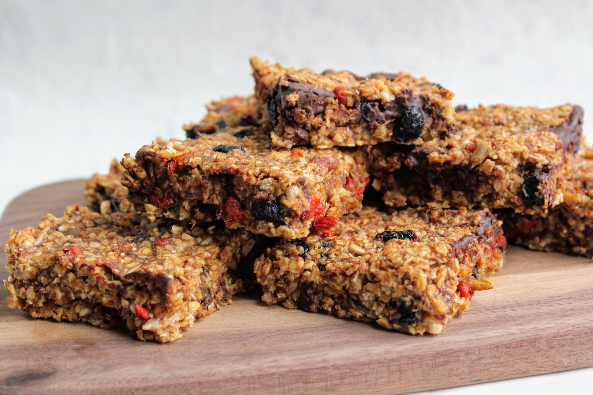 Rich and intense, I thought the orange & cocoa nib variety would pair well with oats, dried fruit, nuts and seeds to create these easy, delicious and natural energy packed snack bars – ideal at any time of day, whether as a breakfast on the go, for those mid-morning or afternoon munchies or before/after the gym. With chunks of chocolate for that sweet tooth, who says snacking has to be boring and tasteless?!