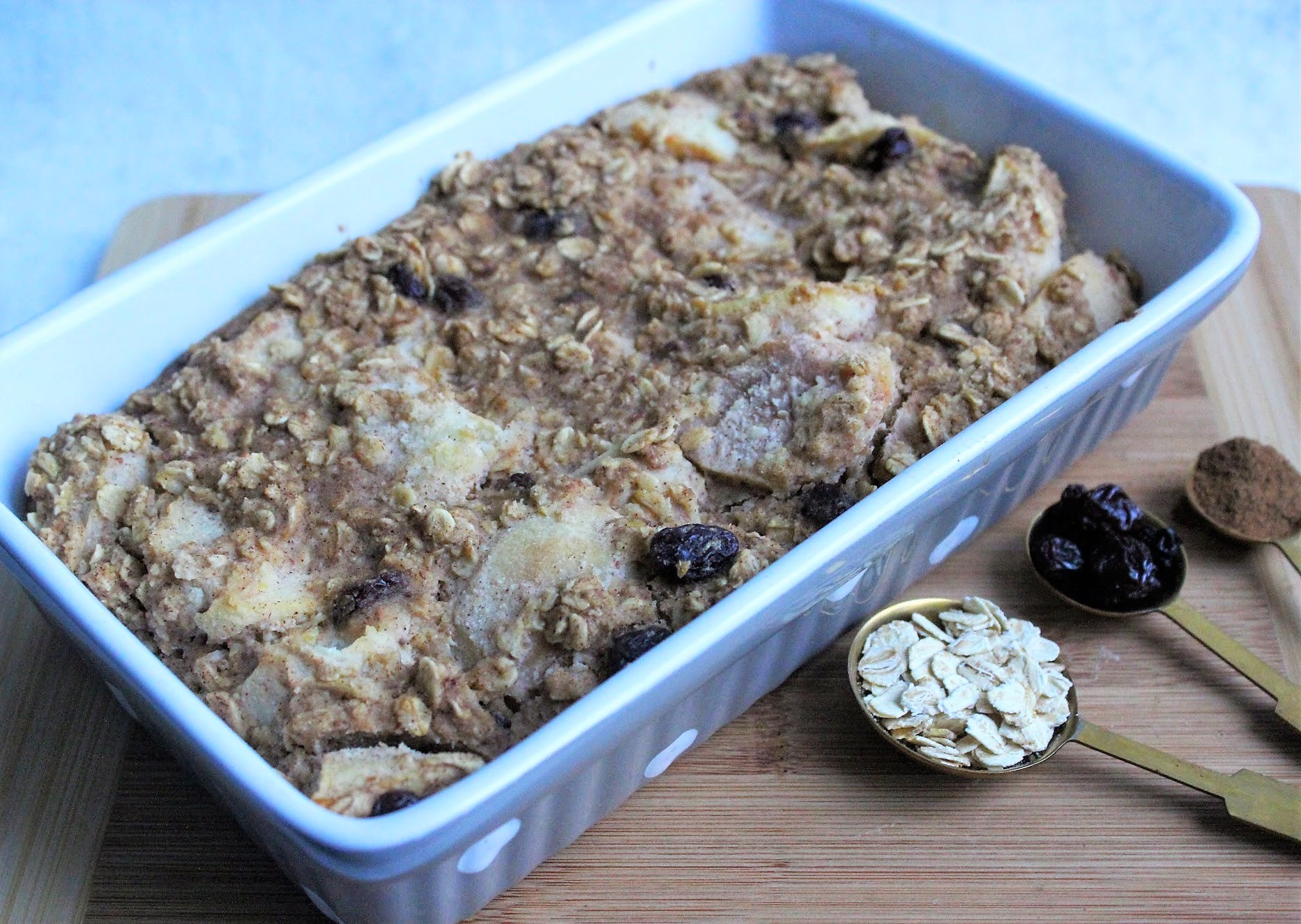 One of my favourite things to have for breakfast is baked oats – just throw in whatever fruits, spices, nuts or dried fruit you have in your cupboard to jazz it up. This recipe is packed with Great British Apples, teamed with the classic raisins and cinnamon for a hearty, warming dish. The best thing is you can eat this hot or cold, at any time in the day – it’s packed with slow-release energy and fibre to keep you going!