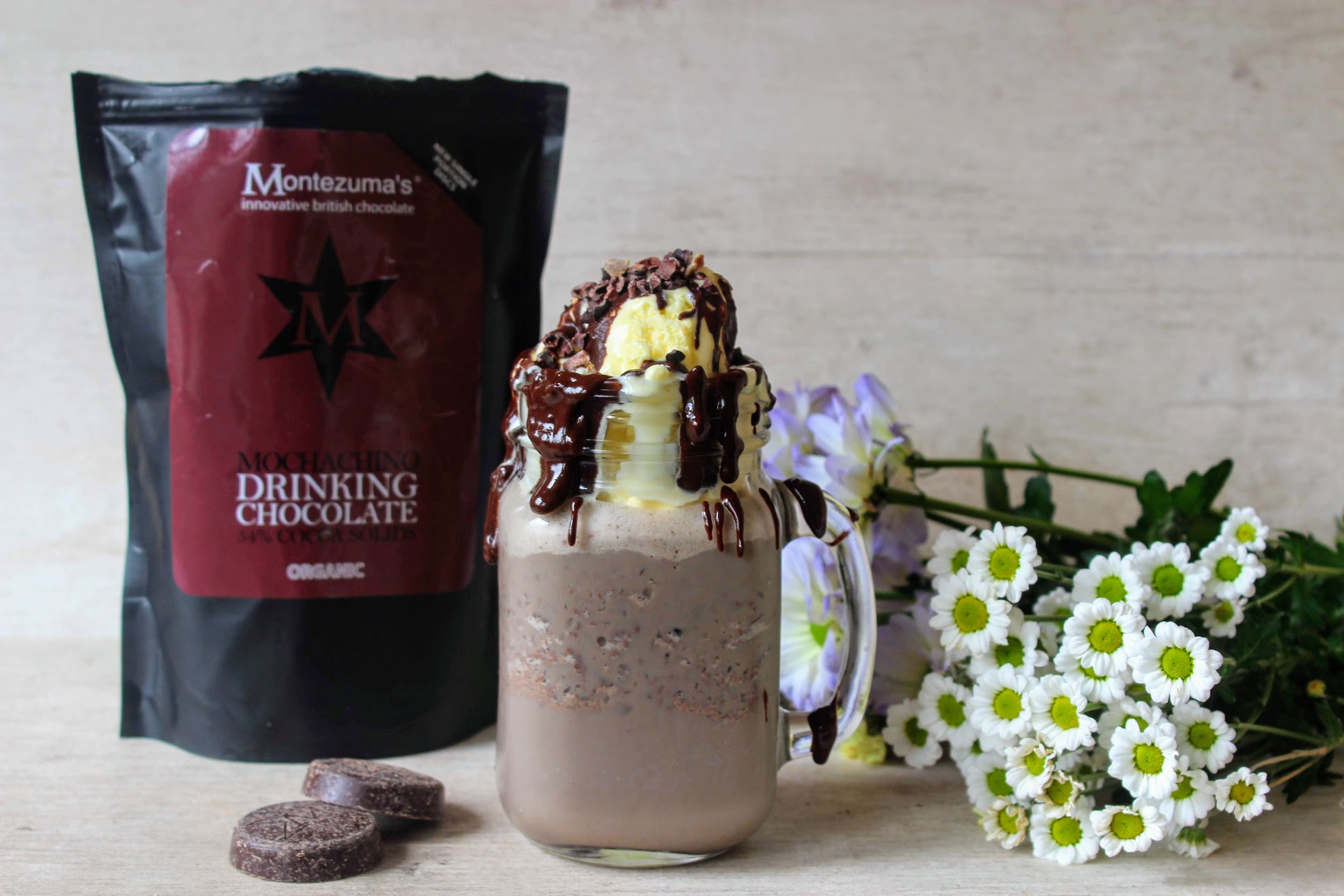 Guys, this is pretty exciting: I’m working together with British chocolate company Montezuma’s as their regular guest contributor, woohoo! The first recipe uses their hot chocolate discs, which might sound unusual considering you’d perhaps associate hot chocolate with winter time, but this is actually a fantastic drink to whizz up when it’s hot and sunny; the nice cream and ice means it’s ideal for summer!