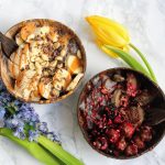 Choosing from a selection of recipes to re-create, I had my eye on the Kefir-Quark Crustless Cheesecake – “Impress your friends with this show-stopping cheesecake – rich and indulgent yet high in protein, packed with probiotics and kind to the waistline!”. Simple to make and great to make ahead as a dessert for others, I adapted the recipe slightly to make mini ones rather than one big cheesecake. You could use any berries or a selection to serve, whatever you prefer. I used frozen blackberries as my choice which worked really well with the 1 teaspoon of vanilla I added to the cheesecake mix, resulting in deliciously creamy little puddings of goodness!