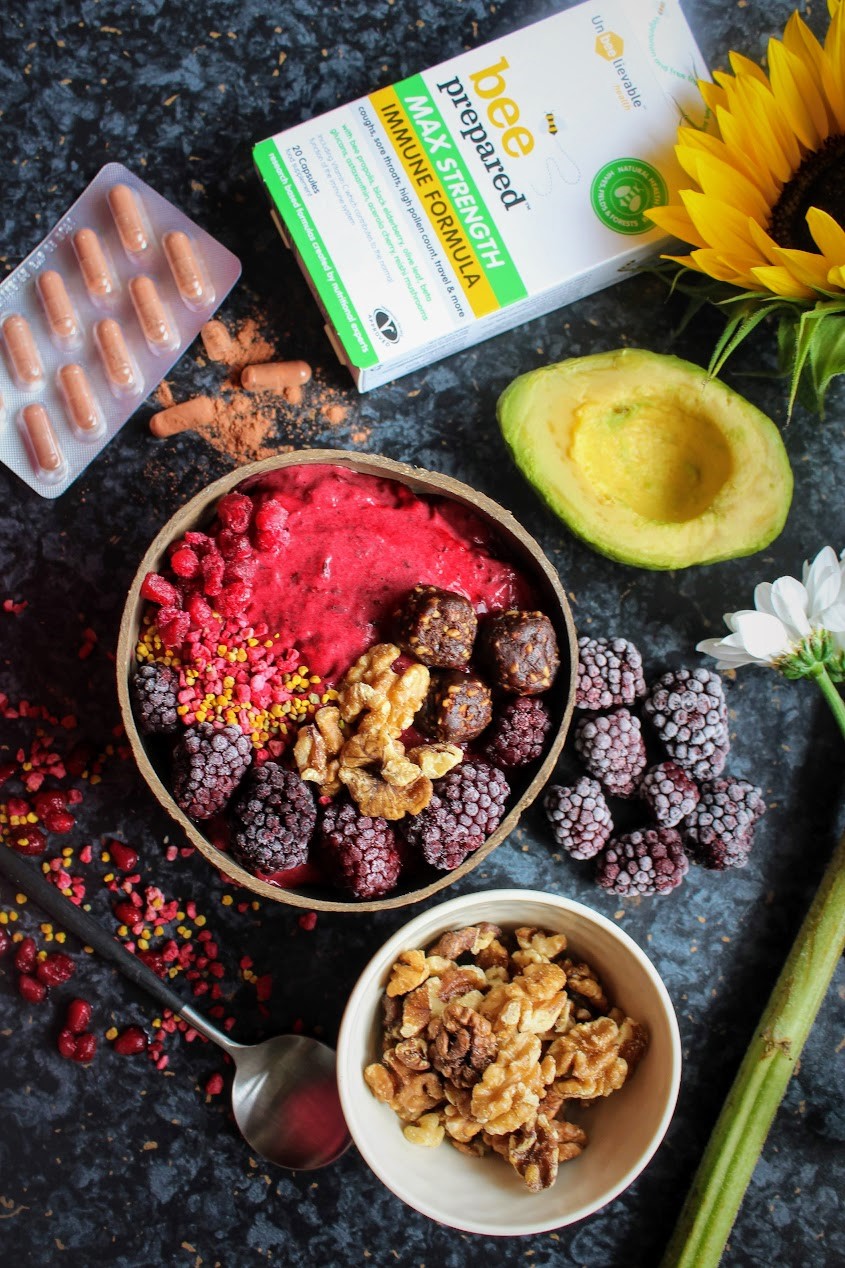 That’s why Unbeelievable Bee Prepared MAX Strength Immune Support capsules are ideal to take alongside a balanced diet and healthy lifestyle during cold and flu season, as well as during exams, travelling, or sports and fitness training. The research-based formula combines unique ingredients not usually found in a regular diet or multivitamin – for instance: bee propolis, black elderberry, olive leaf, acerola cherry, beta glucans, astaxanthin and reishi mushroom. Plant based and approved by the Vegetarian Society, Bee Prepared Immune Support capsules are made in the UK and can be found in health food stores or Boots.