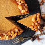 - Make the base: Place the oats and nuts in a food processor and blend until broken down. Add in the mixed spice, almond butter and honey/syrup and blend again until the mixture comes together. Tip into a lined 15cm x 20cm lined tin and press down evenly using your hands. Chill while you make the topping.