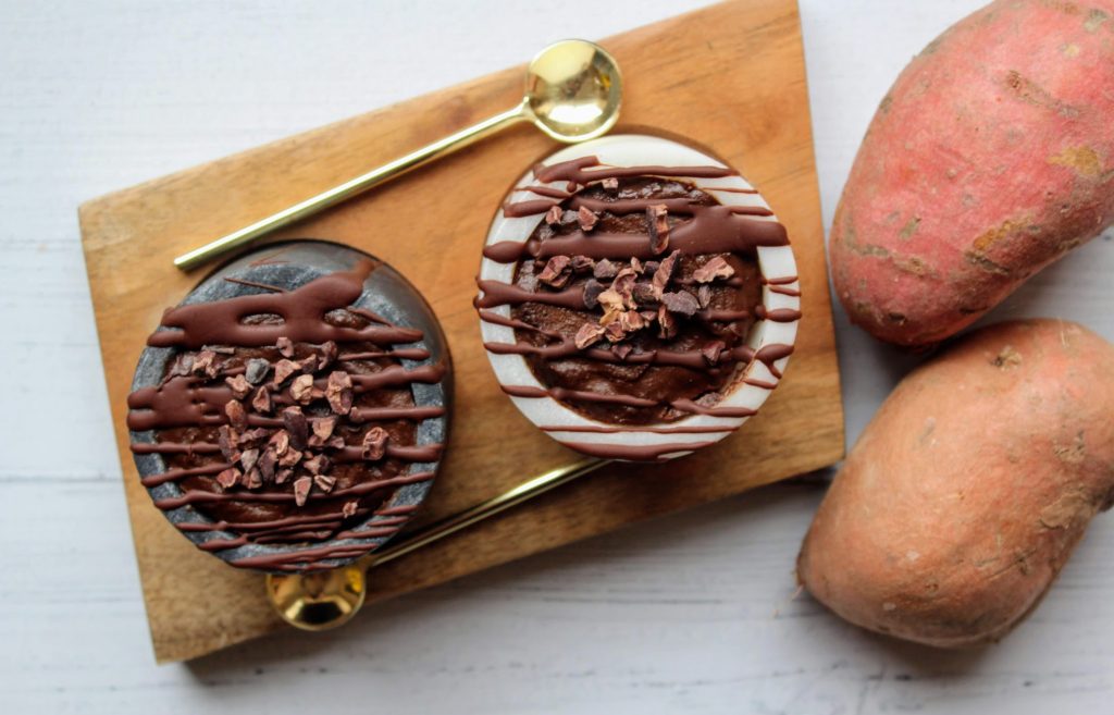 These pots are decadent, chocolatey and secretly healthy thanks to blending up cooked sweet potato to create a thick but silky texture, perfect for these little desserts. You could add any kind of topping – granola, freeze-dried berries, extra chocolate chunks, toasted nuts… Whatever you fancy. Or add orange zest, salted caramel extract or even use hazelnut butter in the sweet potato mixture – that’s the beauty of this recipe, customise it to your own personal taste!