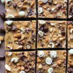 If you love brownies, cheesecake, peanut butter and cookies, then YOU NEED THIS RECIPE IN YOUR LIFE. Because it combines all in one delicious slice… A rich chocolate brownie base, a creamy vanilla cheesecake swirled with peanut butter, topped with chocolate chunks AND chocolate cookies – seriously, what more could you want in a mouthful?! Even better, these bad boys are vegan friendly, dairy-free and gluten-free so most of you can enjoy 😉