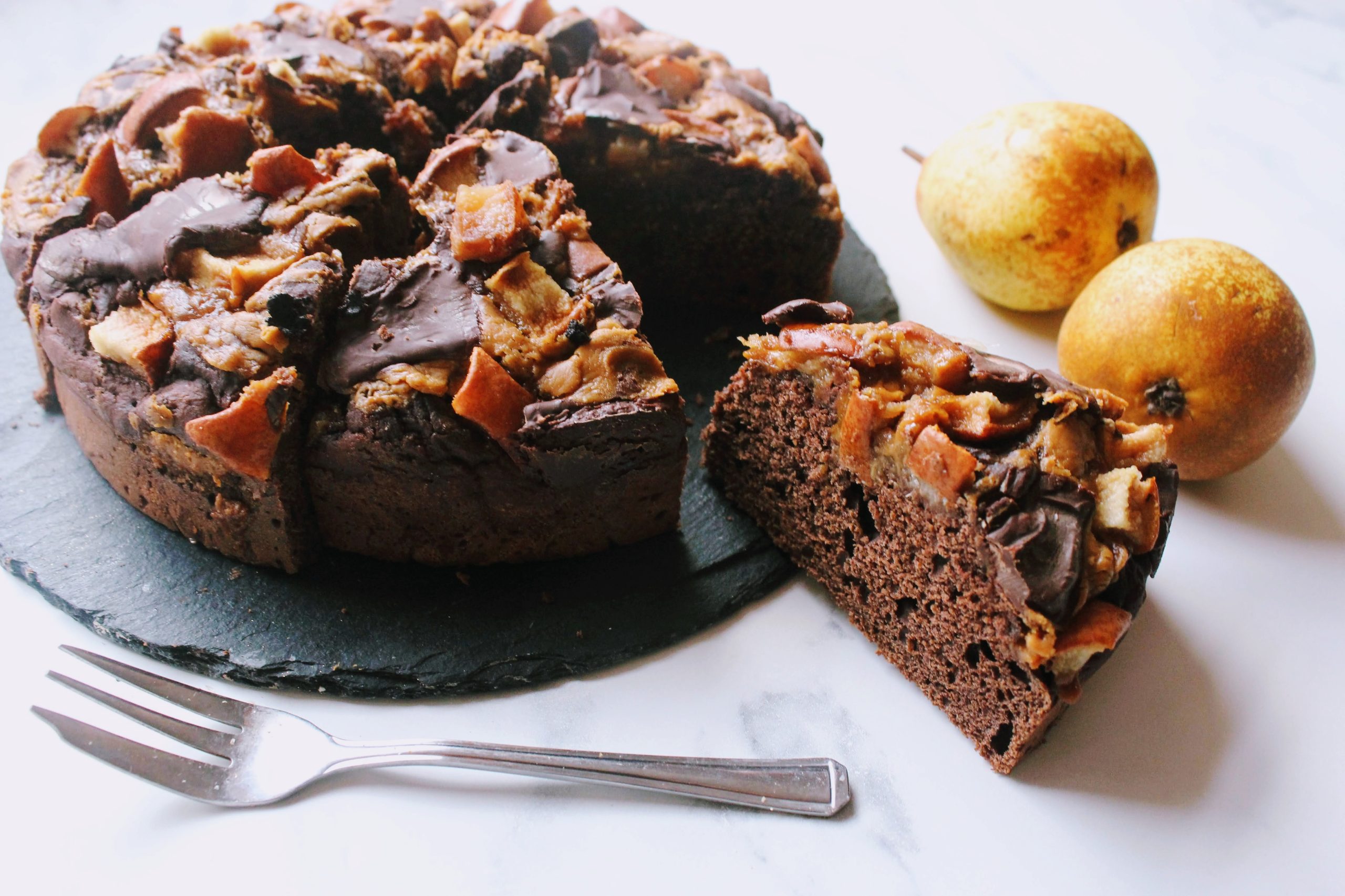 Say hello to this absolute winner of a combination for a cake: A rich, indulgent brownie topped with juicy pears and sticky caramel glaze…Wow! Working in collaboration with Nature’s Charm using their incredible (and dangerously addictive) vegan caramel coconut sauce, this recipe would be perfect for a special celebration, a weekend bake, or even just for a midweek treat! Apples would work just as well as pears, and extra nuts sprinkled on top towards the end of baking would add an even more delicious crunch!