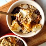 Who doesn’t love a breakfast that feels like eating dessert? This recipe is perfect and tastes delicious either hot or cold! Feel free to use whichever fruit you have handy, from pears to berries, cherries to peaches, and anything from natural yogurt to custard would pair wonderfully with this simple creation.