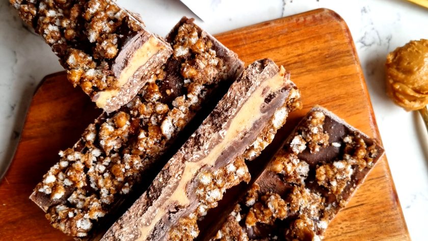 These bars make such a good snack to make ahead, ready for when you want to grab something sweet, satisfying but still kind of healthy! An oaty and crispy chocolate base topped with a peanut butter caramel, finished off with a delicious creamy chocolatey topping…and the final touch – the new Bliss chocolate bars broken up into pieces to add extra crunch and flavour! Keep in the freezer to have on hand for a hot day treat.