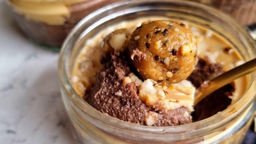 Imagine a rich chocolate ‘mousse’ topped with a peanut butter white chocolate shell, with little chunks of peanut butter and salted caramel high-protein pieces…This is what you get! Pure deliciousness! High in protein, low carb and full of flavour and satsifaction, these no bake treats are ideal for any time of day when in need of a chocolate fix!