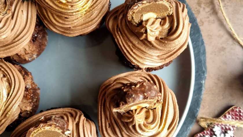 I am so thrilled with these insanely decadent chocolate fudge muffins…topped with the creamiest oat whipping cream and vegan-friendly Ferrero Rochers as the ‘icing on the cake’! A plant based recipe using Nature’s Charm [paid recipe] delicious oat whipping cream and chocolate fudge sauce, these ingredients make these festive treats such a gorgeous recipe to bake over the season.