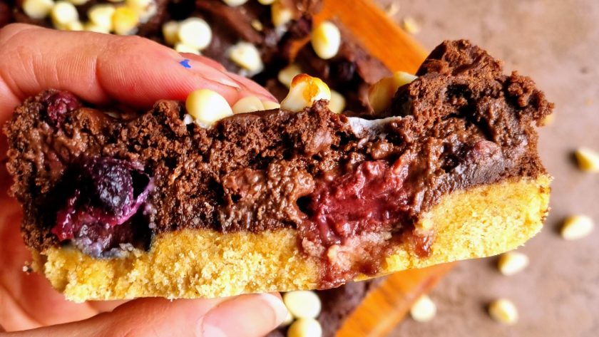 This might sound like a bit of a random mix of things and flavours but trust me, this combination works SO well! A biscuity gingerbread inspired base, topped with a berry studded brownie plus white chocolate chips scattered on top…Seriously good and such an ideal mid morning or mid afternoon sweet snack.