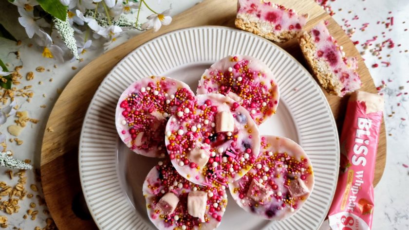 I’m a big fan of dessert-based bites you can make whip up, make ahead and have to hand when you want something sweet – whether that’s after dinner or any time of day. An oat base made with minimal ingredients, topped with a low-fat yogurt and berry mixture plus a cheeky feature of the new Bliss Yogurt & Strawberry bar, this recipe is so easy to create and feels like a proper treat.