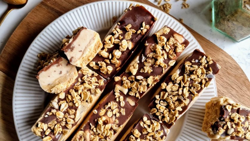 It might not be summer yet but it’s never too early for a frozen treat, especially when we’re talking about this recipe which combines peanut butter + chocolate into these high protein, sweet tooth satisfying bars. No need to bake and easy to whizz up and pop in the freezer for whenever you hit a craving!
