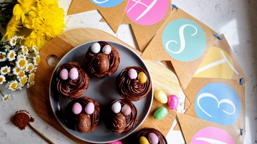 Oh hey there super delicious, indulgent and decadent Easter treats – or to be honest, for any time after Easter if you have any leftover chocolate or Mini Eggs to use up. An easy gluten-free cupcake recipe topped with a chocolate ganache and finished off with extra chocolatey toppings…get these baking and enjoy!
