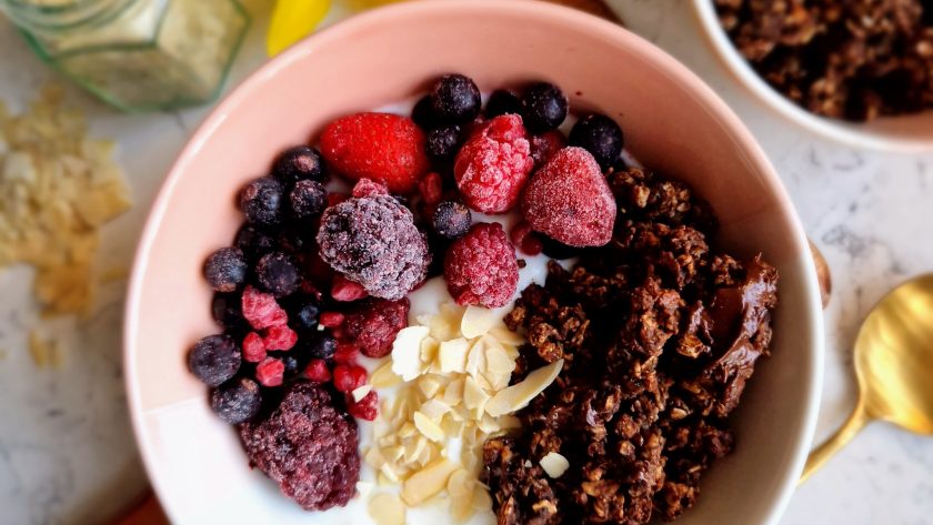 There’s something so satisfying about making your own granola – especially when you can make it under 15 minutes in an air fryer (not having to preheat the oven, winner!). This recipe is a delicious, simple and healthy combination of oats, nut butter, chocolate and banana to create a batch of chunky goodness that can be enjoyed at any time of day. You can double the batch if you want, and keep in an airtight container. Mix up how you serve it; from enjoying with fruit and yogurt to sprinkling on top of a protein pudding, or just straight from the tub!