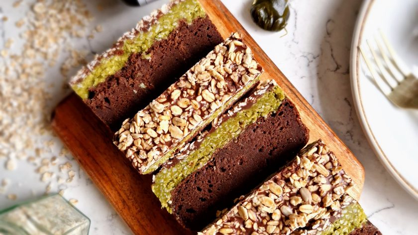 There’s something so special about this recipe, which combines a deliciously soft sweet potato brownie base, a coconut matcha layer plus dark chocolate on top to create a stunning treat. These slices are packed full of flavour, texture and would make a great dessert for any occassion. It’s the Nature’s Charm coconut matcha sauce that really makes this [paid] recipe so good, adding not only colour but also a gorgeous sweet taste.