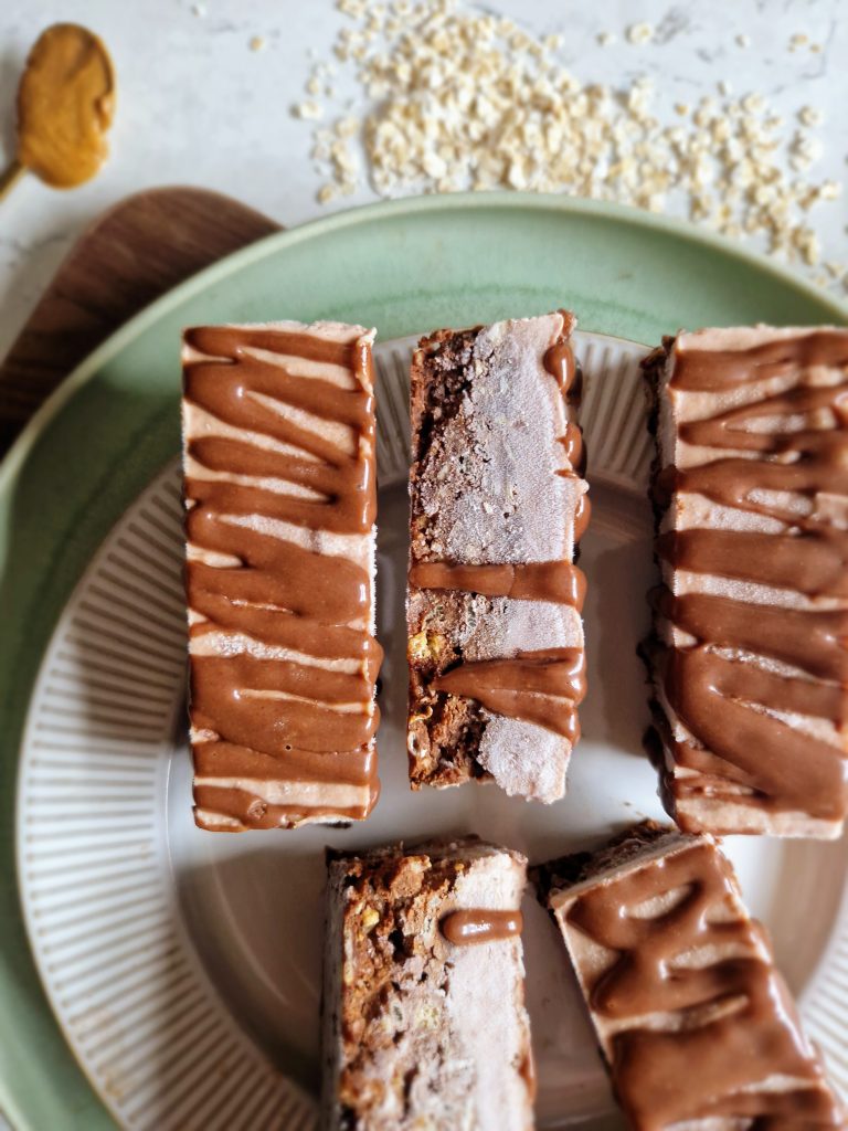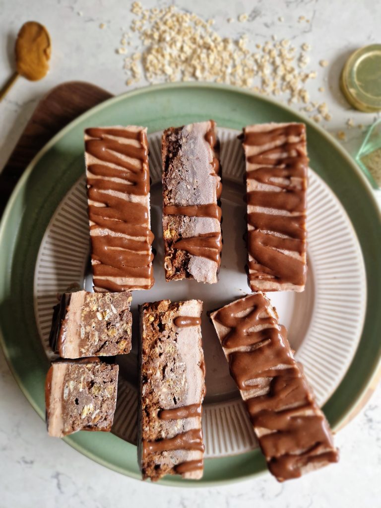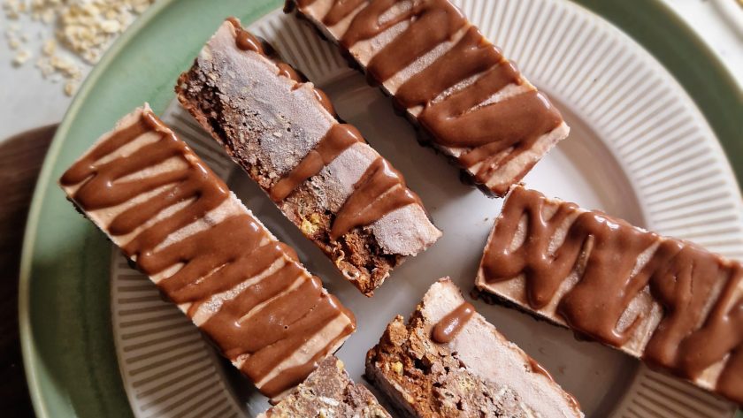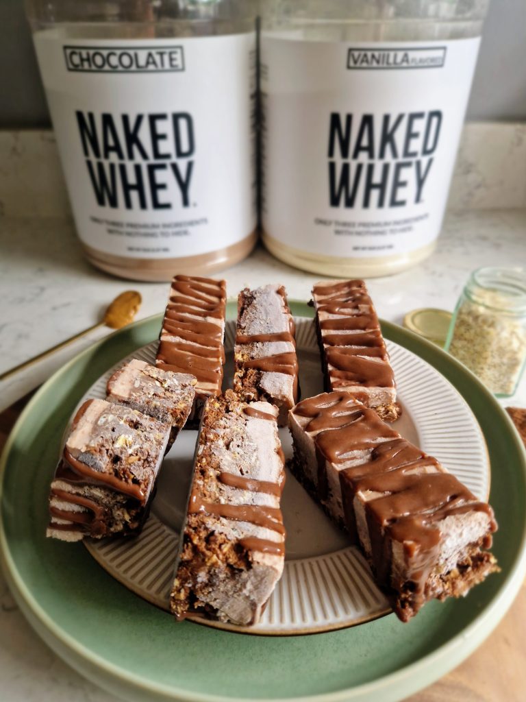 Here’s a recipe you need for the rest of the summer – especially when it involves chocolate, chocolate and more chocolate in these high protein frozen treats. An easy to whizz up base made from chickpeas, oats and nut butter, topped with a protein-packed chocolate yogurt layer – with an extra boost from Naked Nutrition’s chocolate protein powders – plus a chocolate drizzle to finish these bars off nicely. Sorted! [This recipe was made in paid collaboration with Naked Nutrition.]
