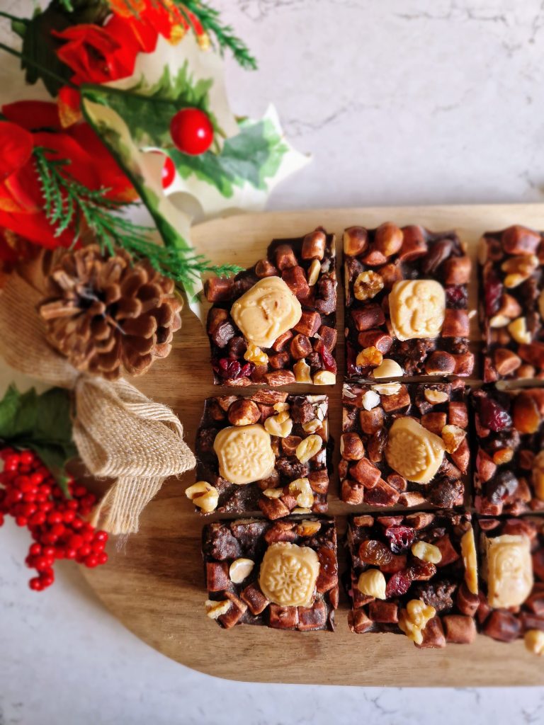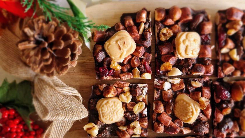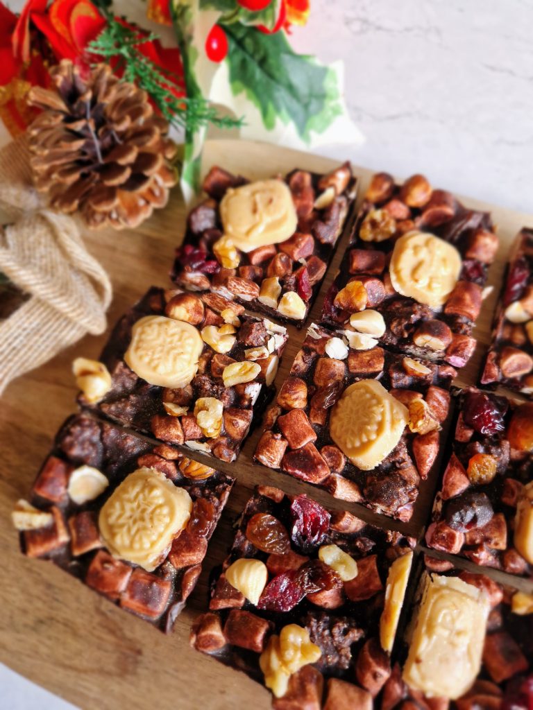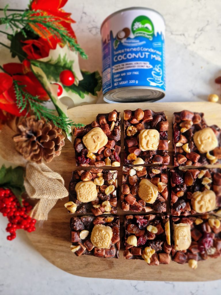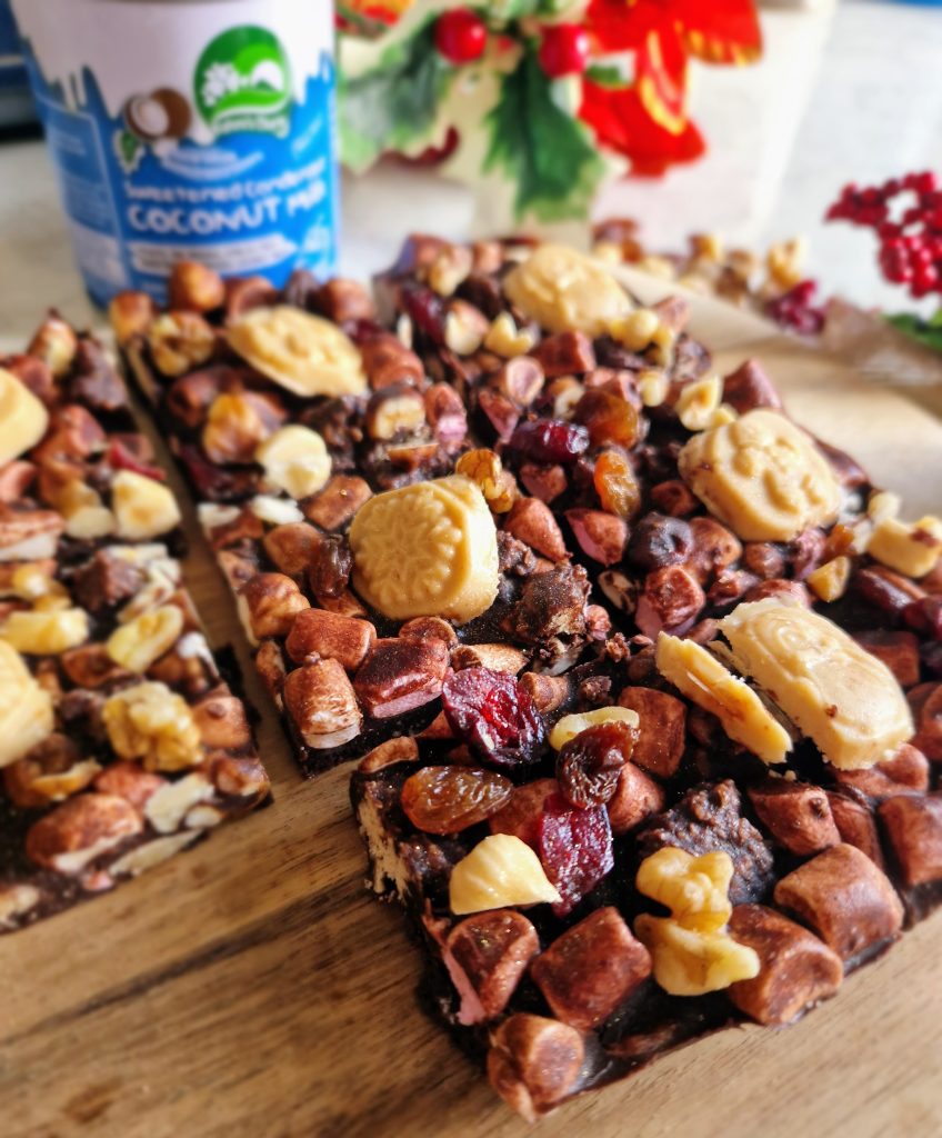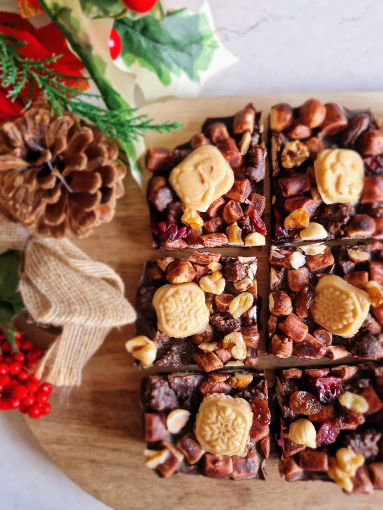 You can’t beat a festive recipe that requires simple prep, goodies like chocolate and marshmallows, plus some goodness like nuts and dried fruit…plus your own easy cute Christmas chocolates (advent calendar tray = life hack!). Using Nature’s Charm’s sweetened condensed coconut milk [paid recipe] to create the perfect texture for these colourful treats.