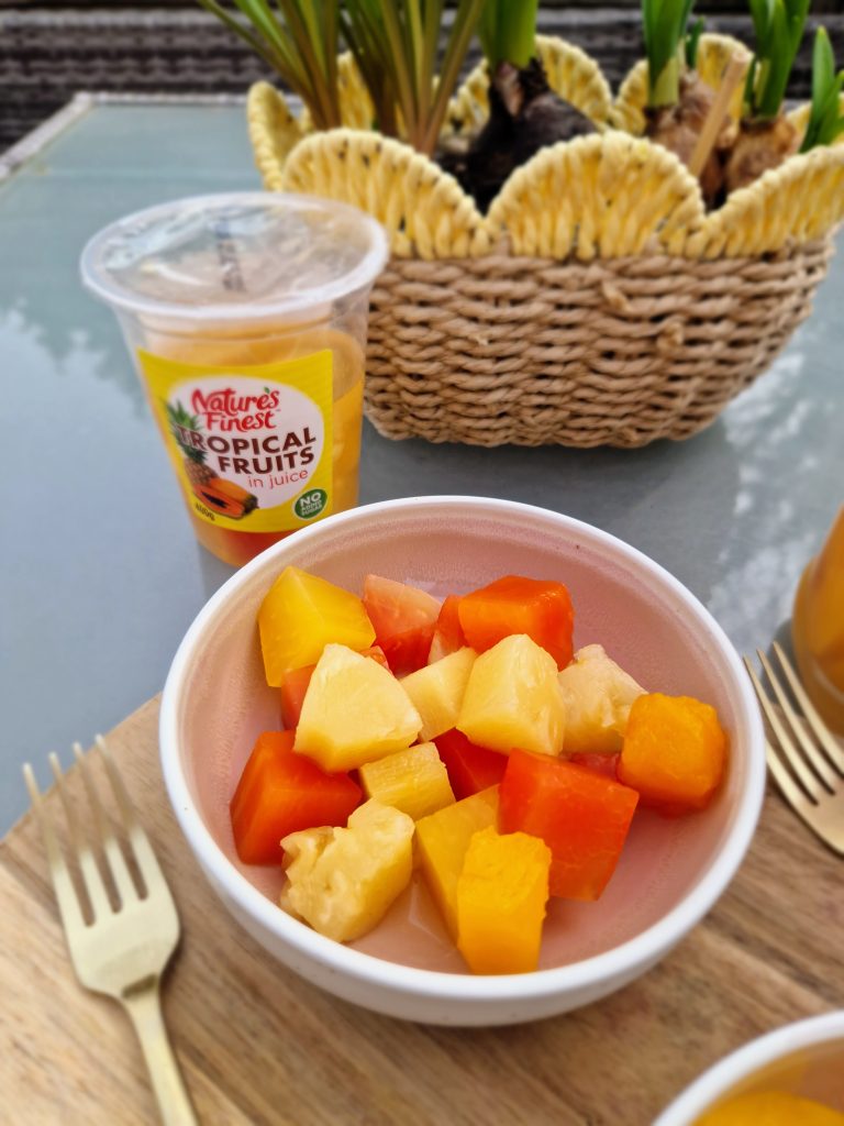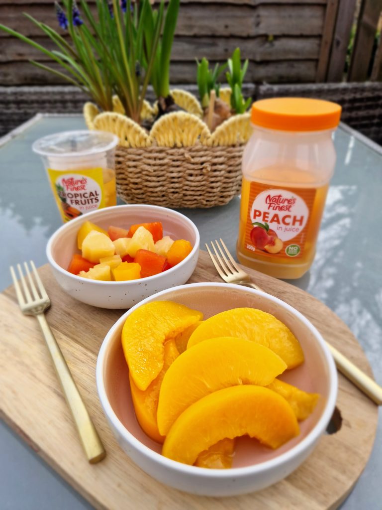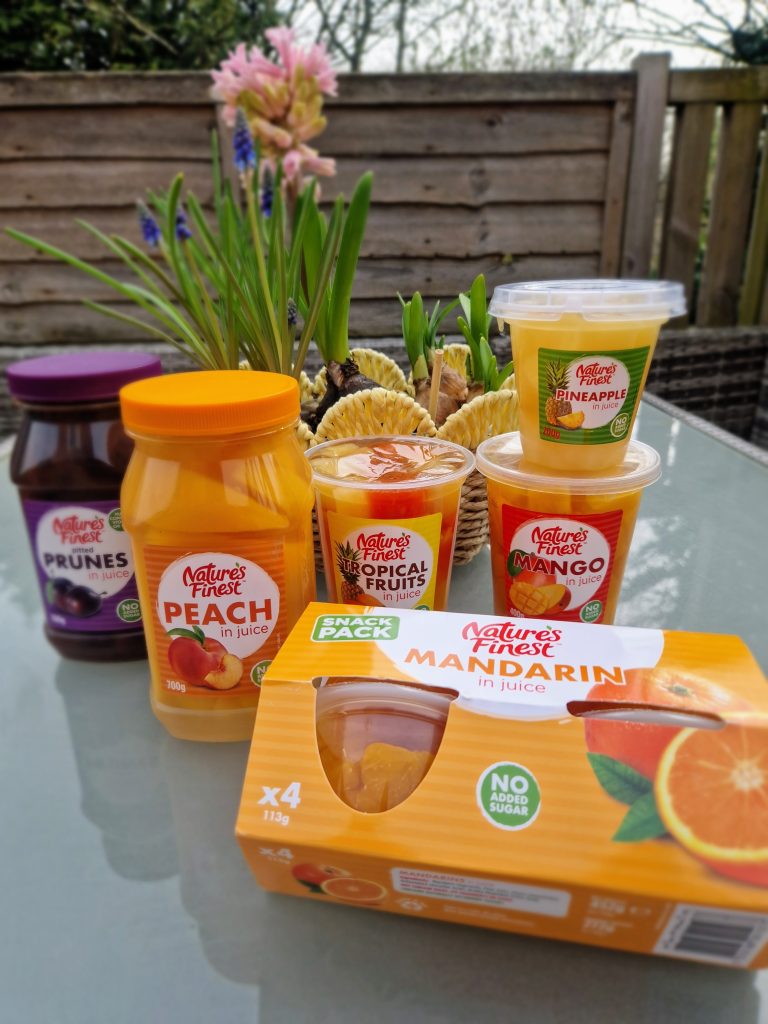 I remember years ago when tinned fruit got a bad rep; well, how times have changed! I’ve always believed that whether fruit and vegetables are fresh, frozen, tinned or dried, they all carry essential nutrients and it’s great to be able to have a variety in our fridges, freezers and storecupboards. And Nature’s Finest products are no different, in their vibrant packaging made from recyclable materials – I always have some tins or pots in the cupboard handy if the kids have eaten all the fresh fruit!